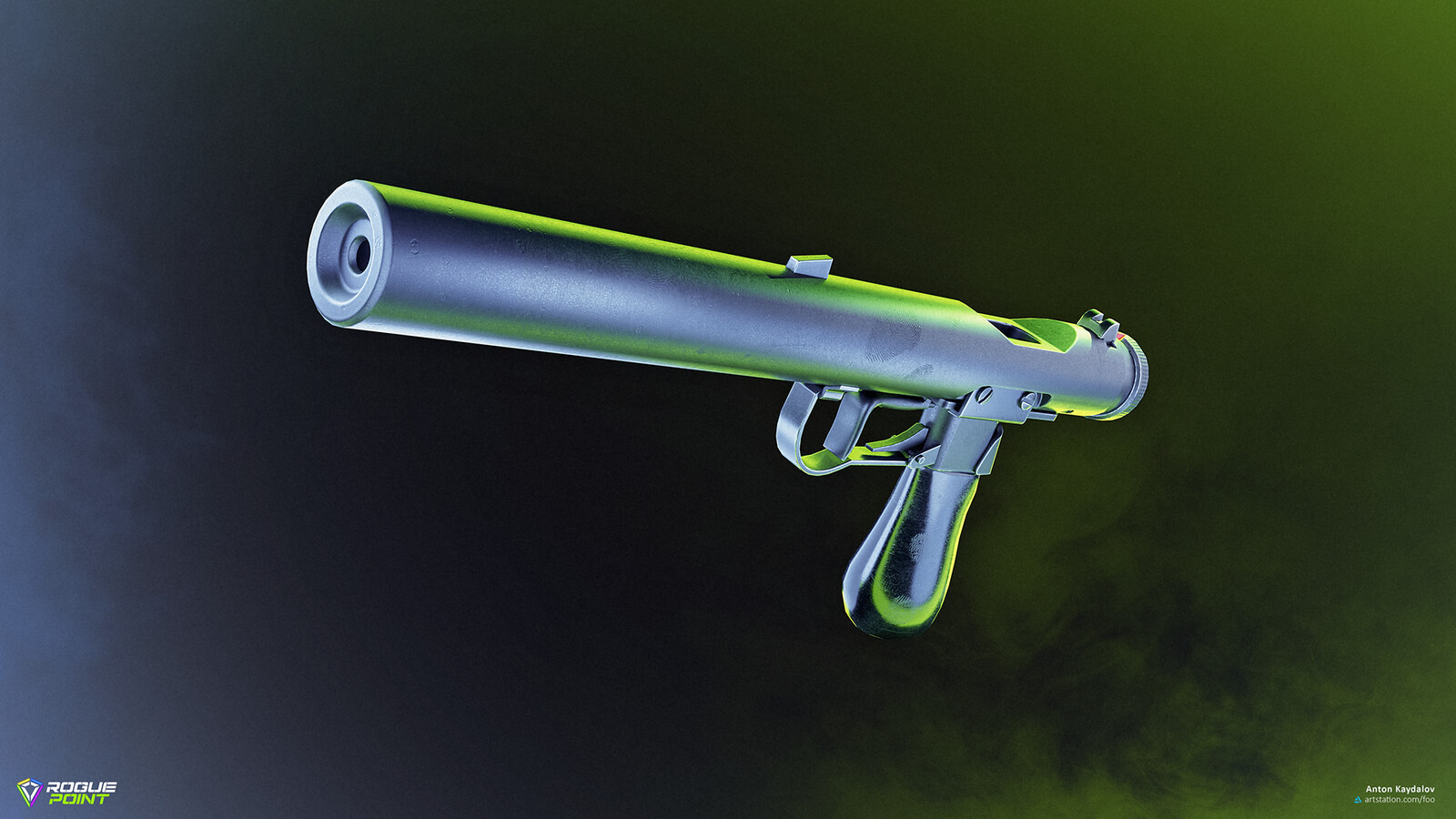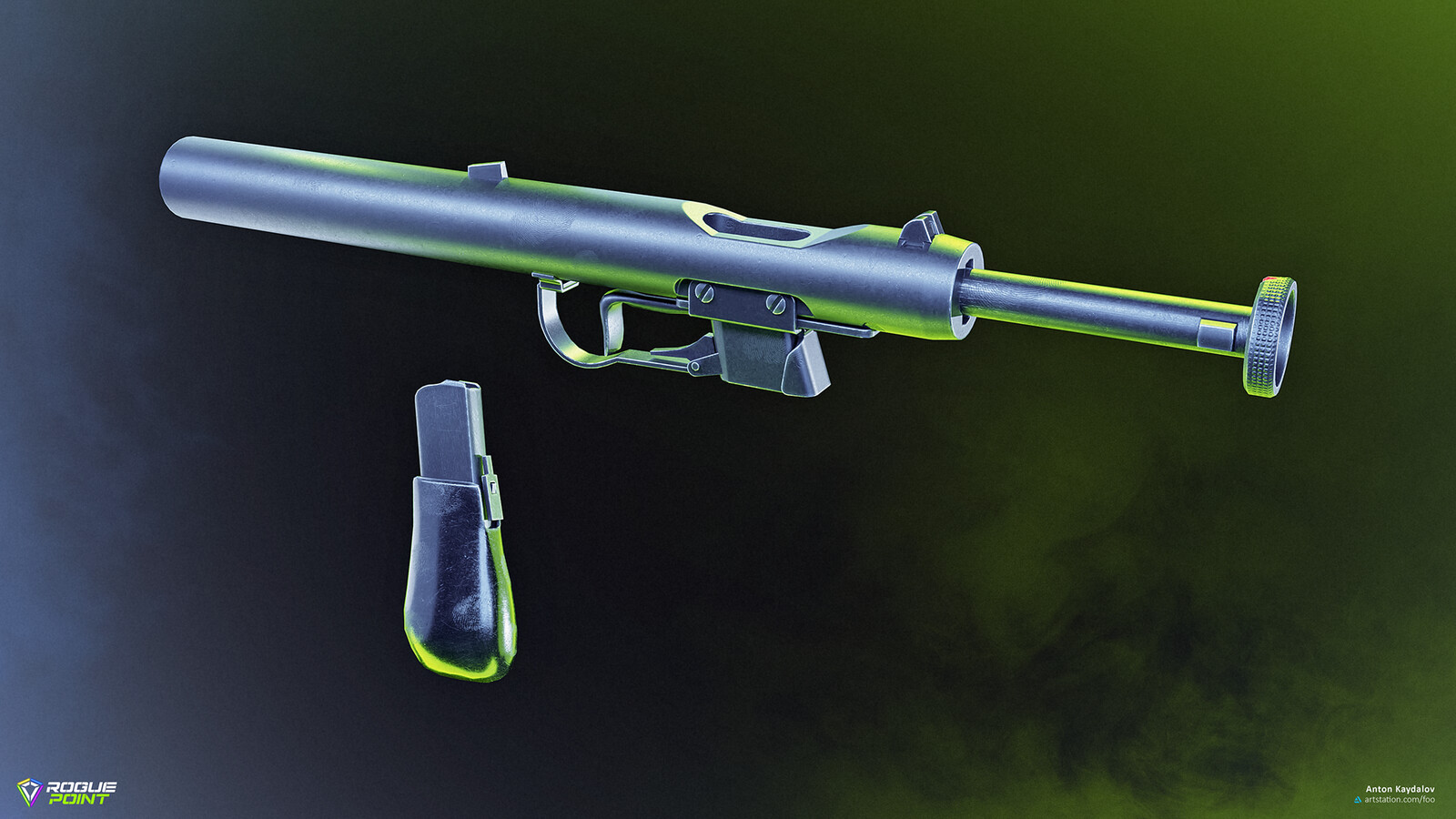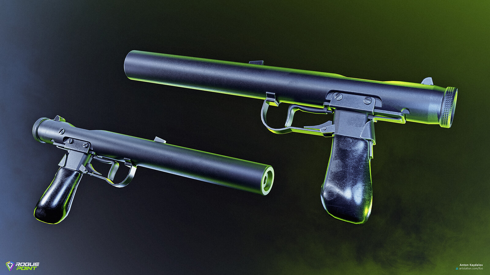 Bolt-action, magazine-fed pistol with an integrated suppressor Welrod for Rogue Point.