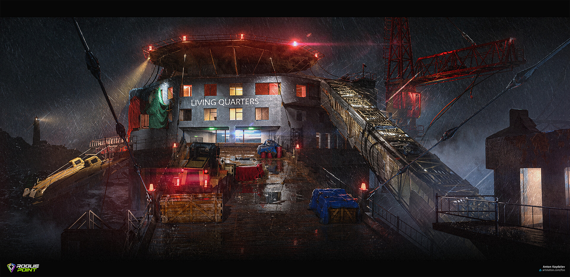 Mood shot of the Living Quarters section on the Oil Rig map in Rogue Point.